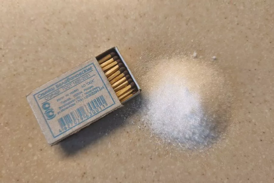 Состав средства очень прост. Надо смешать 1,5–3 части сахара с 2 частями извести. Например, для одного костра достаточно взять 3 чайные ложки сладкого ингредиента и 2 – оксида кальция (негашеная известь). В это количество потребуется сера с головок 10 спичек. Ее надо измельчить до состояния порошка, добавить в смесь и тщательно перемешать до однородной массы. Розжиг готов.