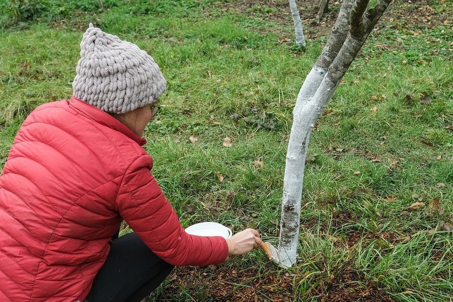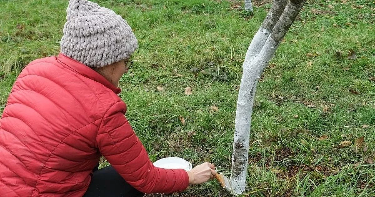 Важно! Не используйте чистую известь для молодых деревьев – она может обжечь кору. Разводите ее водой в пропорции 1:3 или выбирайте щадящие составы.