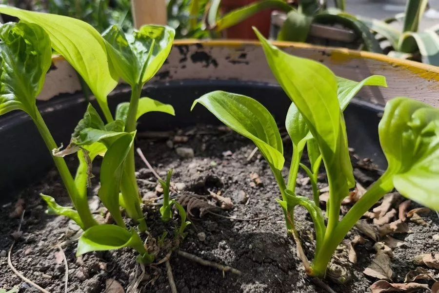 Первую подкормку хосты можно проводить, когда ростки достигнут 5–7 см.
