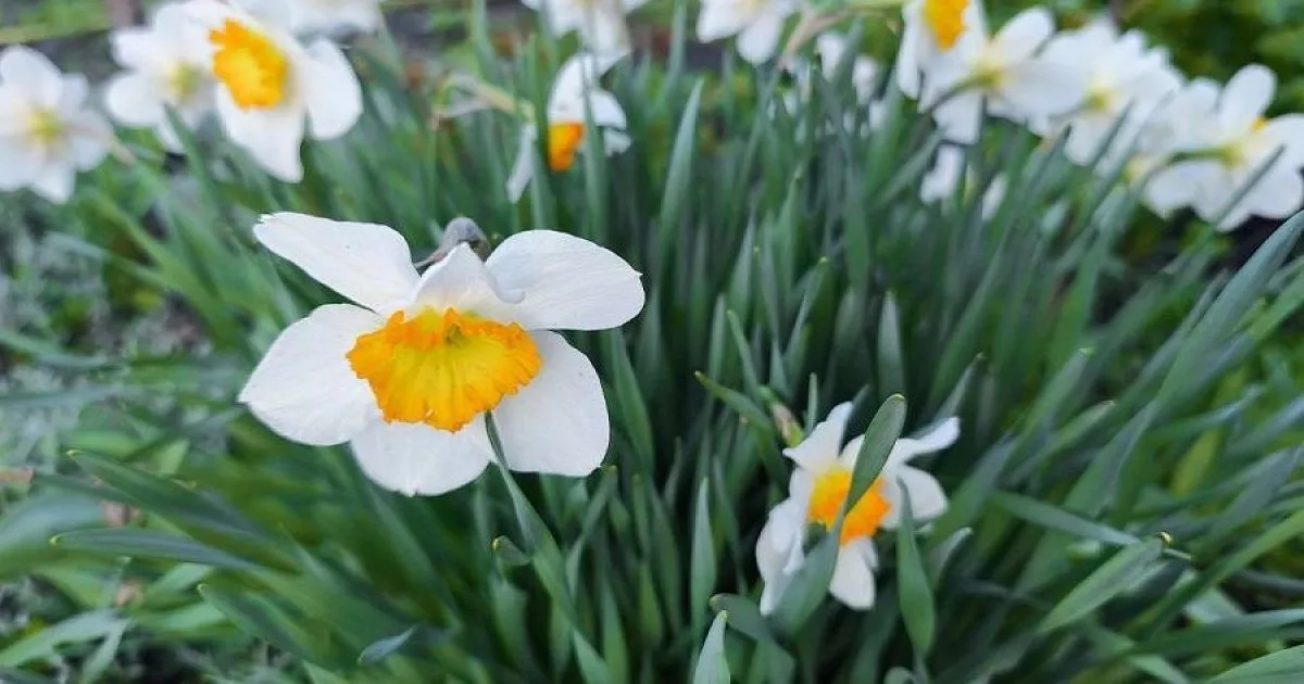 После цветения нарциссы продолжают развивать зеленые листья, которые играют важную роль в накоплении питательных веществ для луковиц. Поэтому первая и самая важная мера ухода – это не удалять листья сразу после того, как цветы увянут: 6–8 недель после цветения. За это время луковицы насытятся необходимыми питательными веществами и подготовятся к следующему сезону.