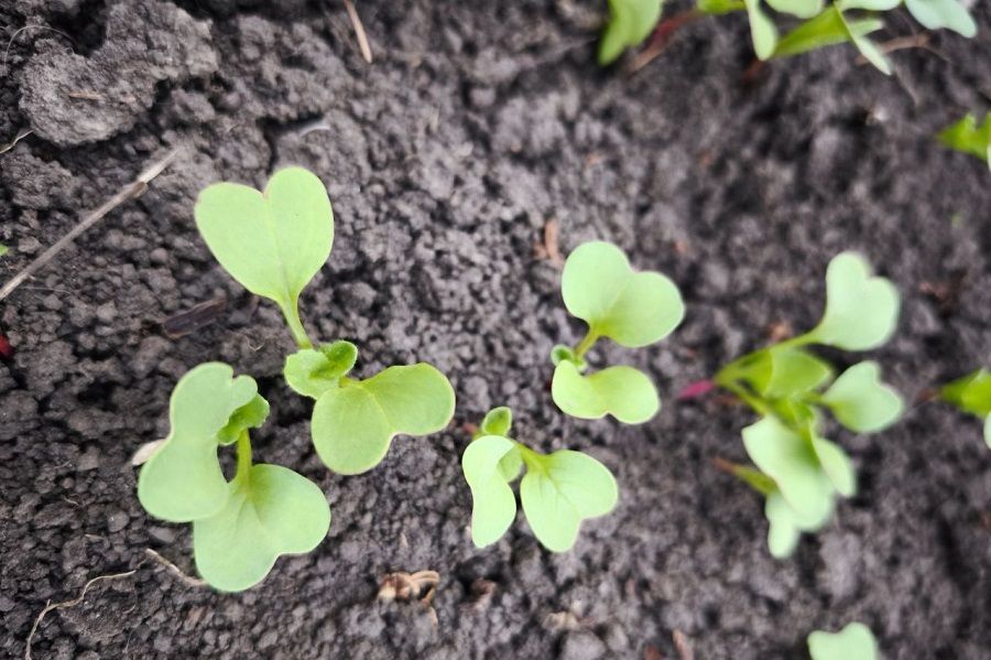 Салаты (листовые и кочанные). Листовым сортам достаточно 10–15 см между кустиками, кочанным – 20–25 см. Прореживание улучшает освещенность и предотвращает гниение.