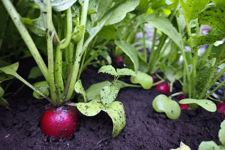 Крестоцветная блошка особенно активна в сухую жаркую погоду. Если посеять редис, руколу или капусту ранней весной (когда почва еще влажная и прохладная), растения успеют окрепнуть до массового появления вредителя. Альтернатива – поздний летний посев, когда активность жуков снижается, но в случае с редисом будет сложно удержать его от стрелкования из-за длинного светового дня.