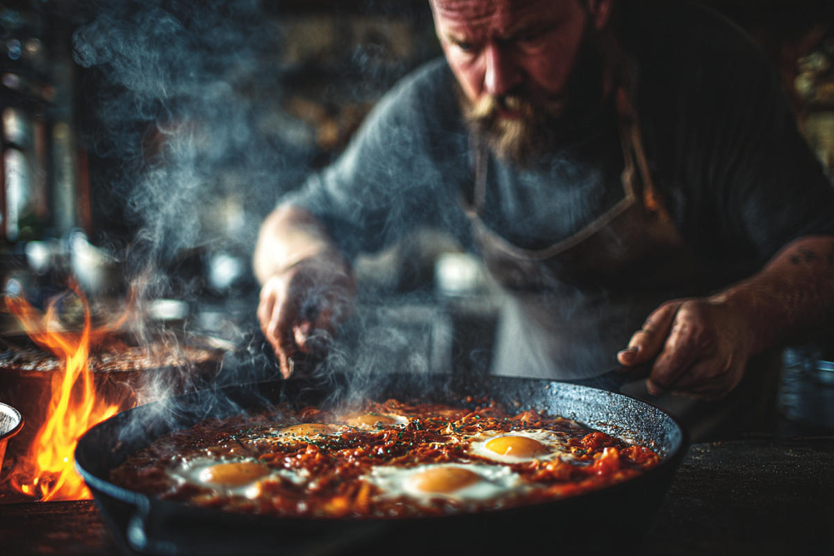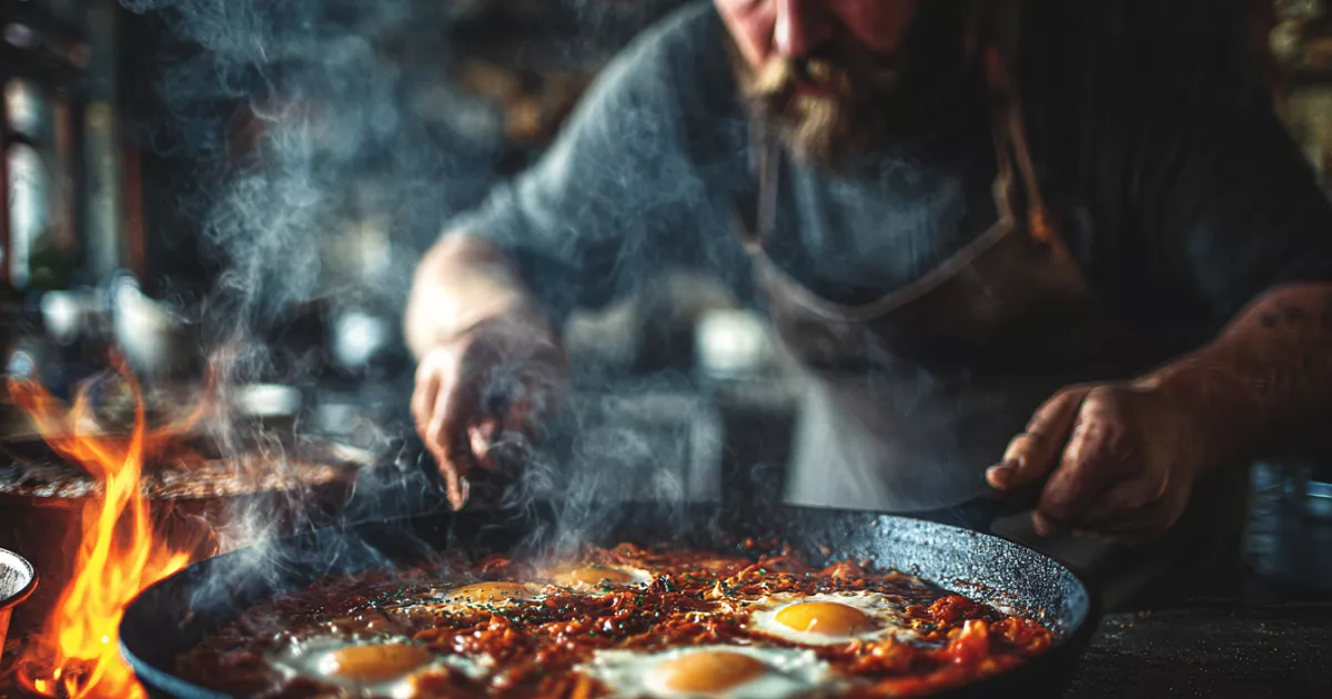 Секрет — в «трухе». Помидоры нужно не тушить, не томить, а жарить до состояния рассыпчатого соуса. Добавьте чеснок, соломку сладкого перца, специи (зиру, кориандр, копчёную паприку), не забудьте про сливочное масло. После — яйца. И только когда всё «женится» на слабом огне, сверху — сыр. Щедро. Без сентиментов. Просто утопите его в смеси и выключите плиту.