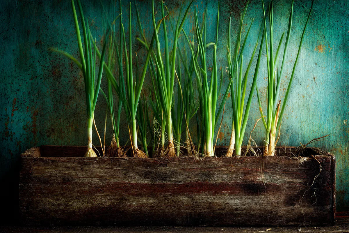 Донышко отправляется в контейнер с рыхлой почвой. «Важно не заглублять сильно, иначе сгниёт», — уточняет Кардин. Спустя 40 дней из одного лукового обрезка появляется целая розетка зелёных побегов. Каждый побег — это будущая луковица.