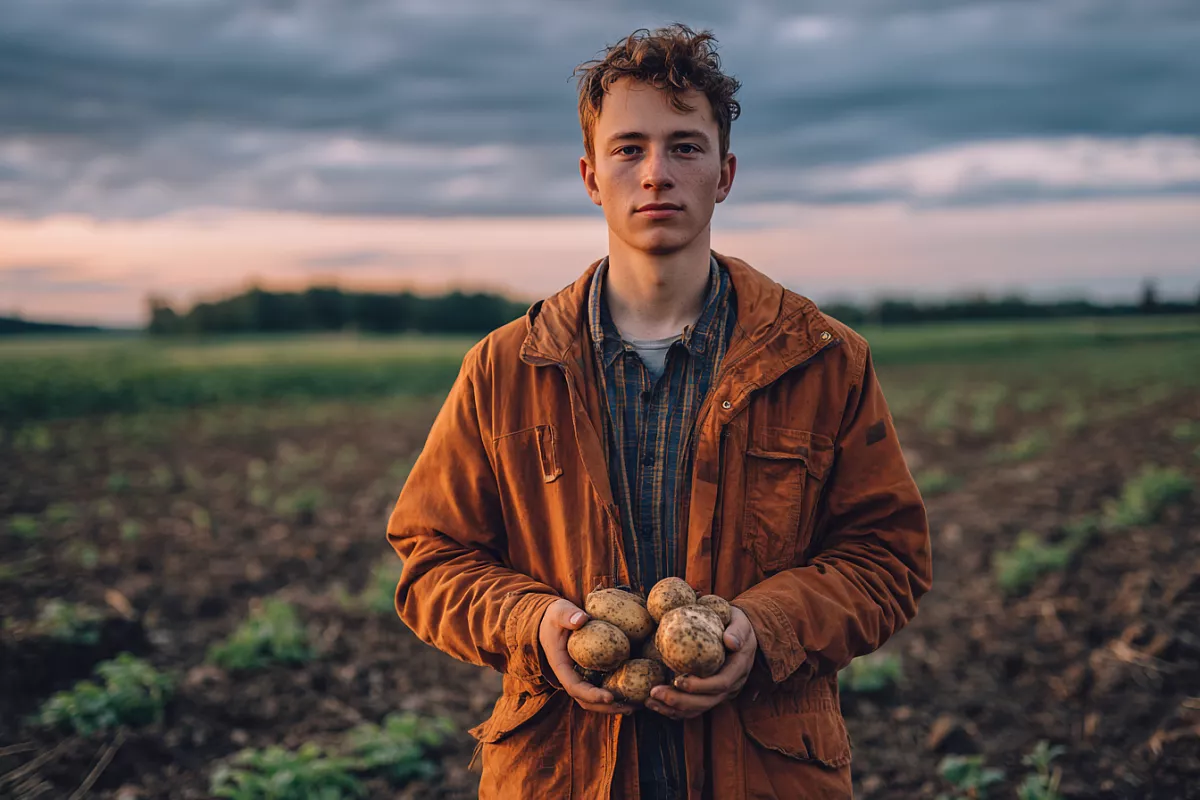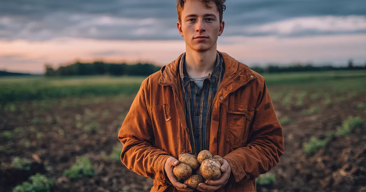 «Очень трудно поместить в руку», — говорит Евгений Кардин, показывая клубень размером с кулак. Его семья собрала 730 кг картошки с сотки. Без двух окучиваний, без химии, с минимумом трудозатрат. И всё это — в жарком климате Курганской области, где картофель обычно вянут ещё до цветения.