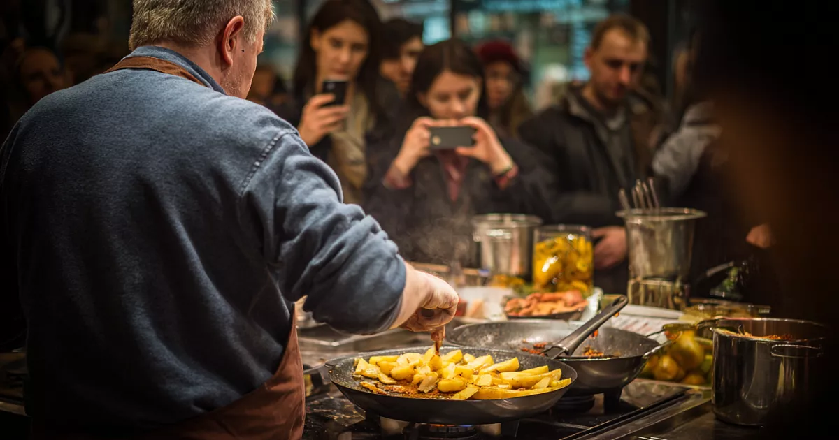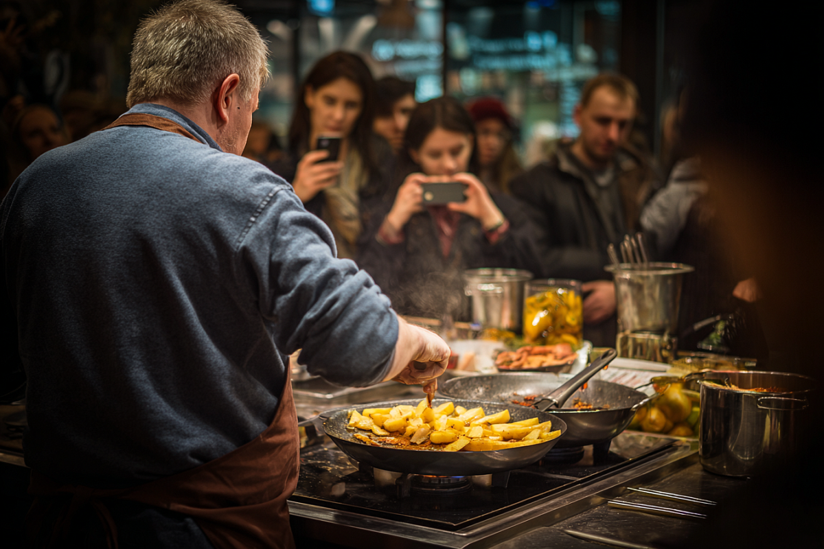 «Жаль, что Интернет не передаёт запахи», — признаётся Константин Ивлев. Потому что в этот момент картофель уже скворчит, хрустит, тает и пахнет — именно так, как должно пахнуть воскресное утро у бабушки или пятничный вечер после работы.