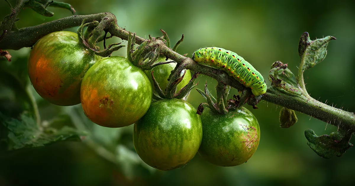 Иногда причина, по которой помидоры не зреют, буквально ползает по кусту. Речь о гусеницах томатного и табачного бражников — это личинки ночных бабочек, которые питаются листьями и плодами томата. Их достаточно одной, чтобы куст остановил рост, сбросил завязи и замедлил дозревание плодов.