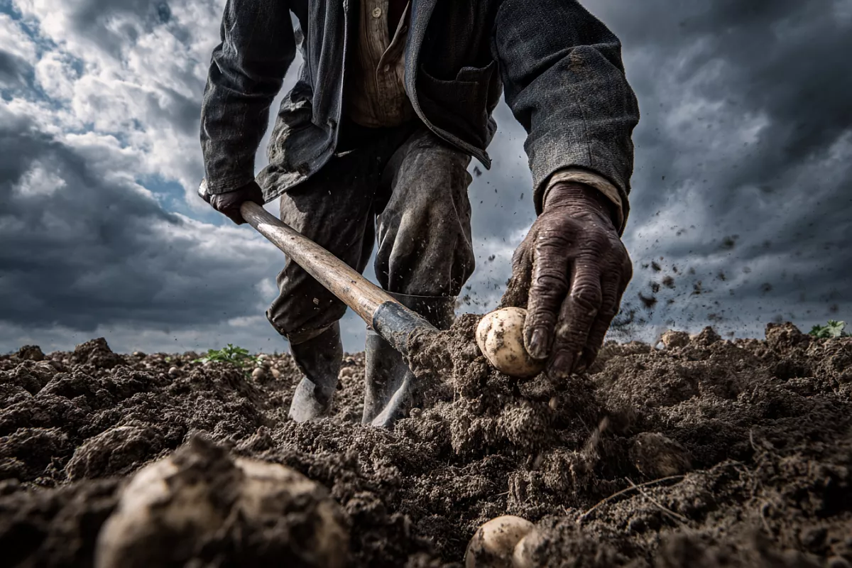 Здесь мнения расходятся: кто-то выкапывает картошку уже в конце июля — начале августа, а кто-то тянет до конца сентября. Однако есть важное правило: после полного засыхания ботвы желательно выкопать клубни в течение 10–14 дней. За это время кожура успевает загрубеть — растение «готовится к зиме». Если же оставить урожай в земле надолго, он может начать портиться.