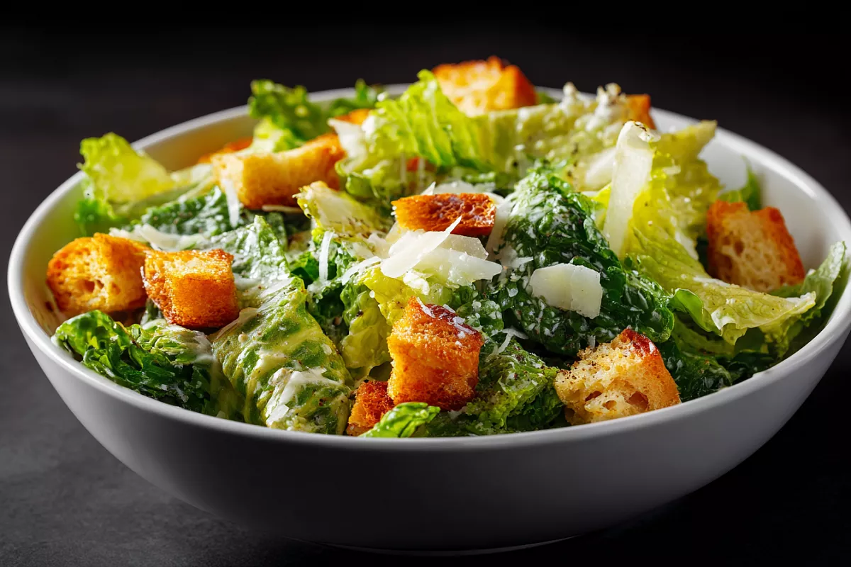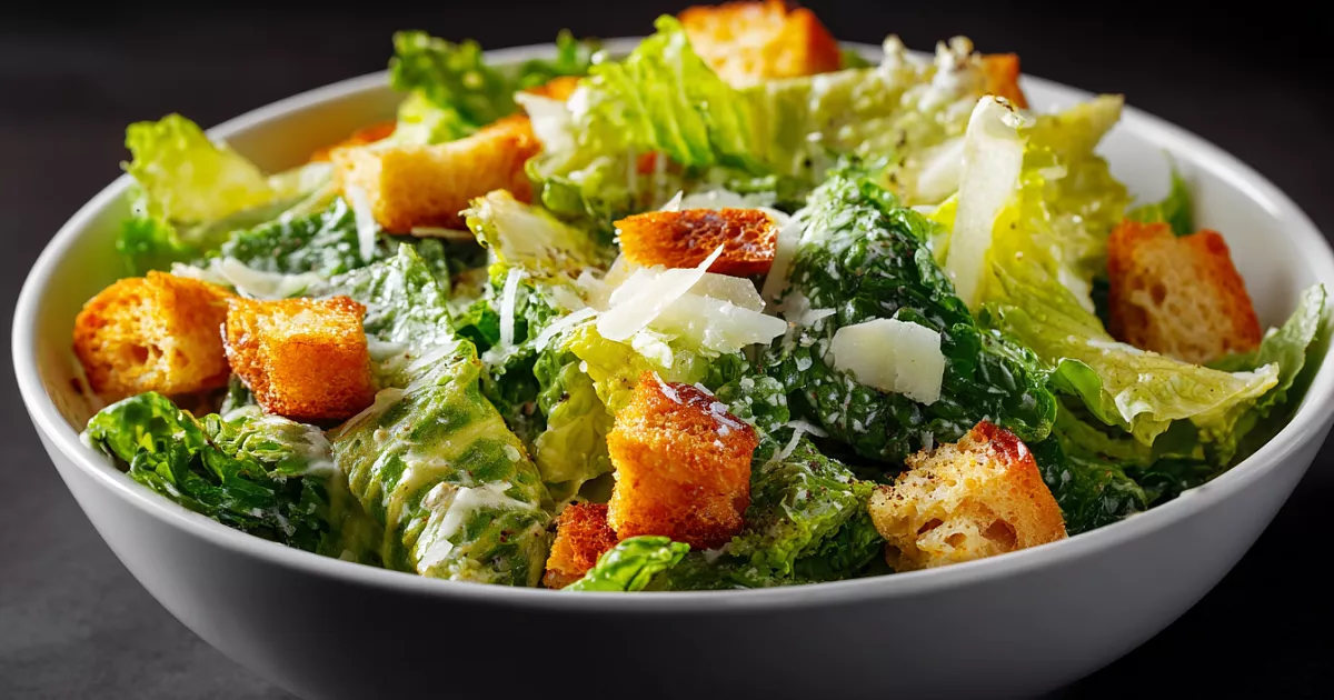 Нежное куриное филе, чесночные сухарики и пикантная заправка без майонеза — этот Цезарь удивит даже тех, кто обычно обходит салаты стороной.