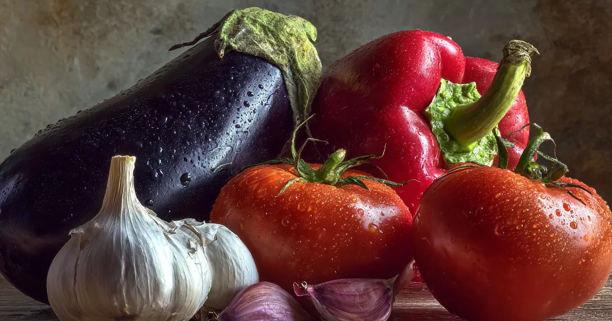 Для приготовления понадобится 2 кг баклажанов, 1 кг болгарского перца, 1 кг спелых помидоров, 120 г чеснока, 150 мл растительного масла, 150 мл винного уксуса 6 %, 3–4 ст. л. сахара, соль и специи: паприка, красный острый перец и молотый кориандр по 1 ч. л.