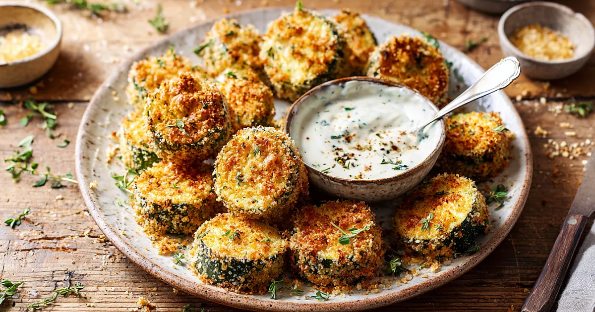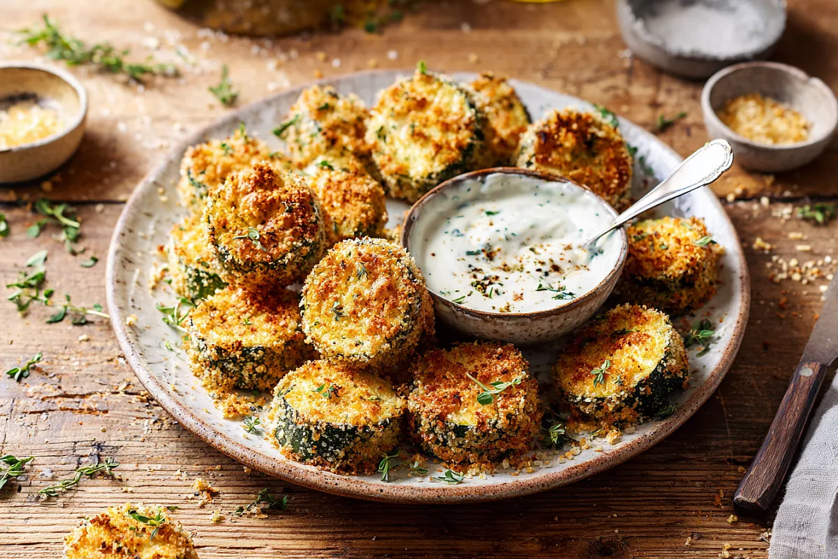 Кабачки отжимают от лишней влаги, обваливают в муке, затем окунают в яйцо и в панировочную смесь. Заготовки выкладывают на противень с пергаментом и отправляют в разогретую до 200 °C духовку. При наличии режима конвекции используют его для идеальной корочки. Время запекания — около 25 минут.