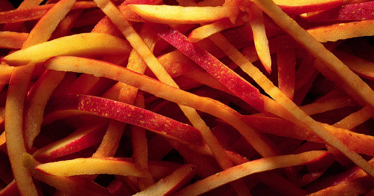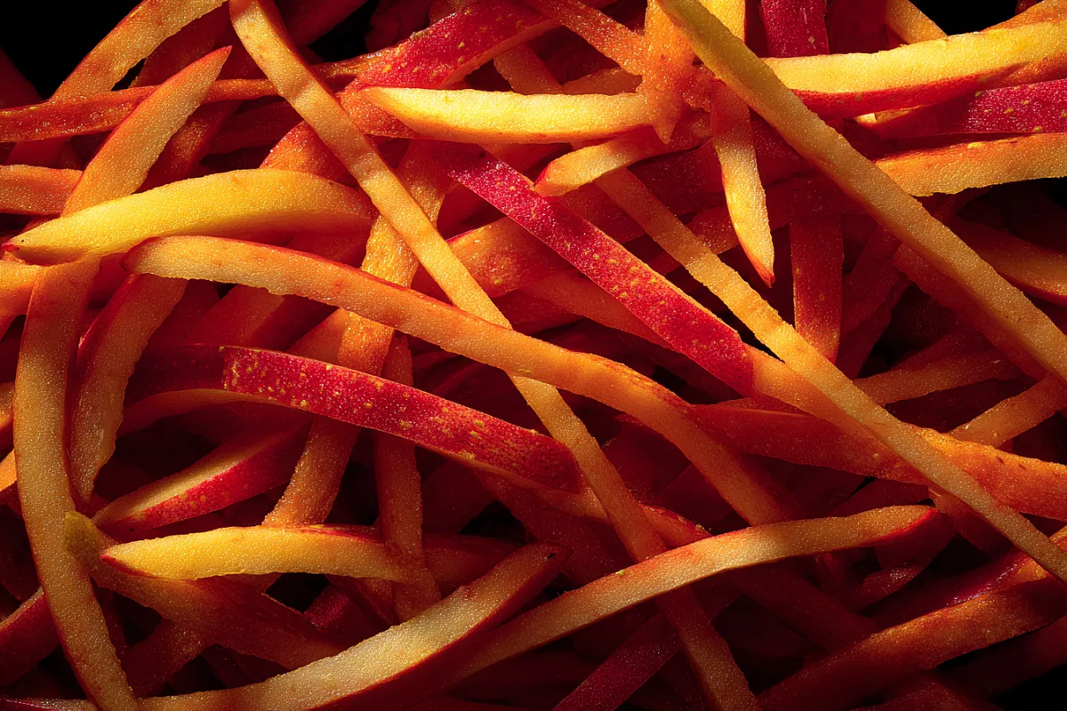 1. Подготовка яблок. Удалите сердцевину, после этого взвесьте плоды. Нарежьте тонкой соломкой (быстрее всего — на овощерезке). Цедру лимона нарежьте или натрите на тёрке.