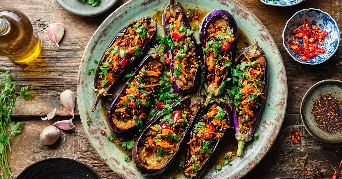 «Фаршированные баклажаны по-корейски — закуска, которая разлетается первой. Главное — дать им время промариноваться», — отмечает автор рецепта Елена Матвеева.