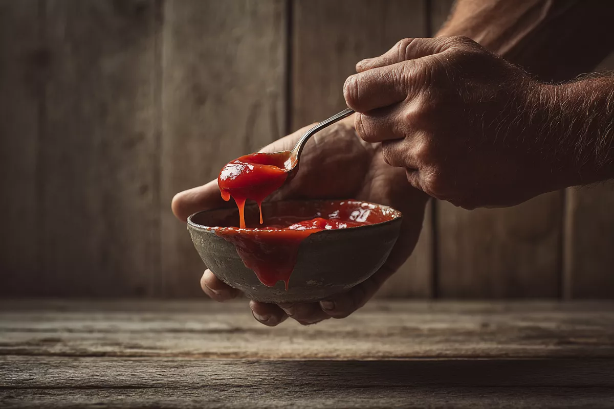 Финальный штрих — уксус. В горячий кетчуп вливают по столовой ложке, перемешивают и сразу разливают в стерилизованные банки. Соус получается насыщенного цвета, густой и ароматный. И главное — готовится без лишних хлопот и многочасовой варки.