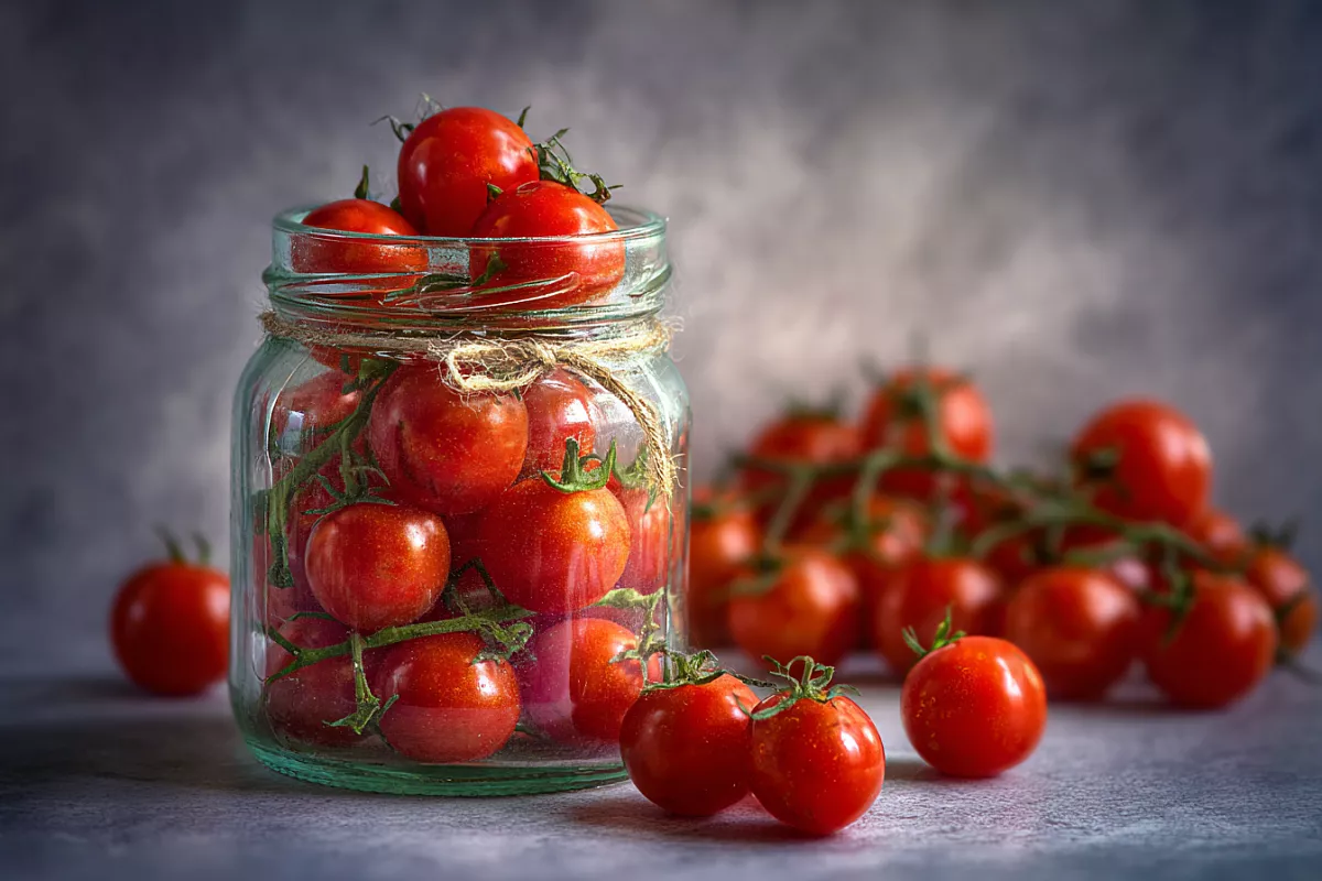 Другой вариант хранения — консервация в банках. Для этого на каждом плоде делают маленький надрез, чтобы легче раздавить его и уплотнить внутри тары. Подойдут и черри, и крупные сорта — главное, чтобы плоды полностью помещались. Банку заполняют доверху, слегка утрамбовывают, добавляют щепоть соли, немного оливкового масла и пару листьев базилика. После этого крышку плотно закручивают.