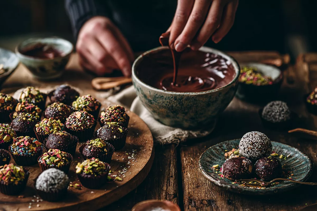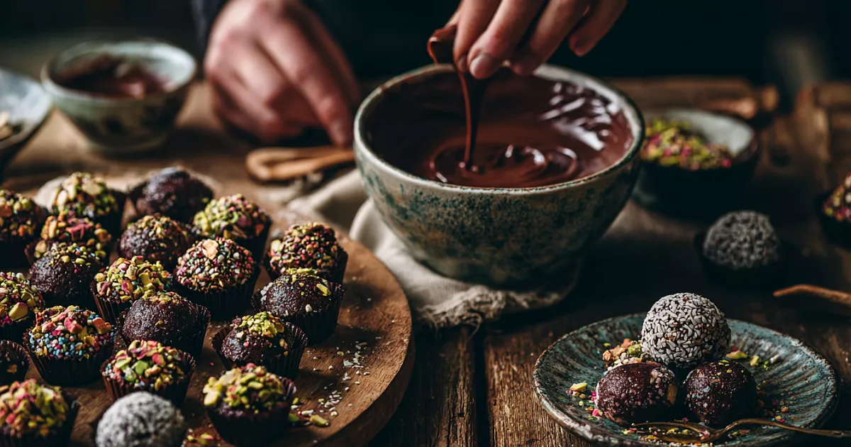 Украшение — орехи. Подойдут фисташки, грецкие или миндаль. Около 100 г орехов мелко рубят ножом и обсыпают в них каждую заготовку. Получается не только вкусно, но и празднично — идеально к чаю или на сладкий стол.