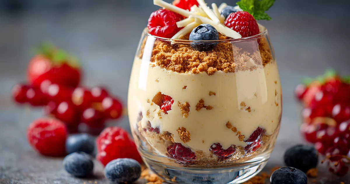 Ведущая: «Этот десерт — настоящая находка! Без выпечки, быстро, вкусно, с ягодами или фруктами. Готовьте и наслаждайтесь!»