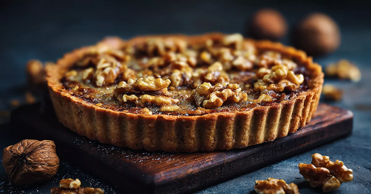 Как только смесь закипает, её снимают с огня и сразу вмешивают орехи. Начинка ещё горячей выливается на охлаждённое тесто. Тарт отправляется в духовку при 180 °C на 40 минут. «Обязательно прикройте фольгой в середине, чтобы орехи не подгорели», — советует автор.
