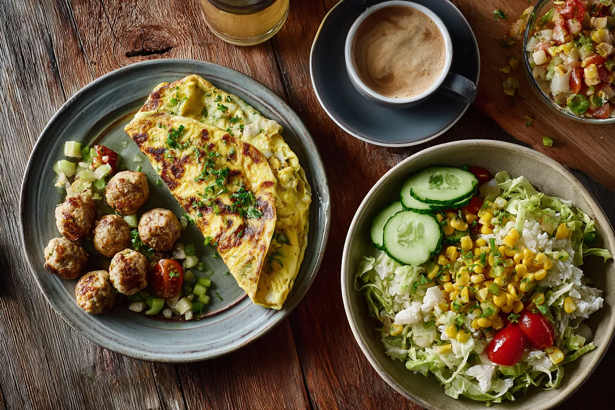 Оля пьёт 2–3 чашки кофе в день с миндальным молоком, учитывая его калорийность. Она советует экспериментировать с начинками для лепёшек и использовать метод тарелки для контроля порций. Рацион прост, но сбалансирован: белки (яйца, мясо, тунец), жиры (масла, семена) и углеводы (рис, хурма, банан).