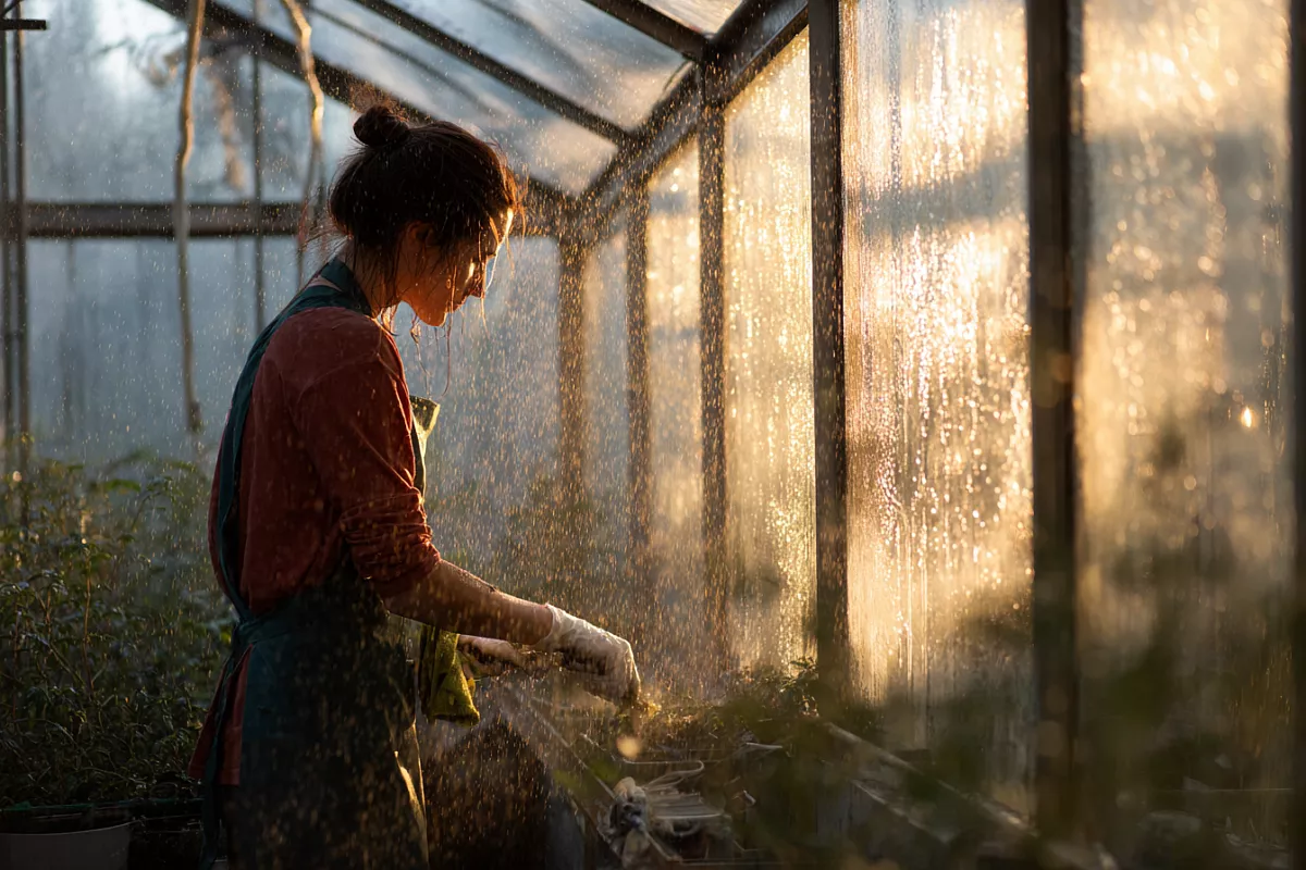 Автор блога "60 Соток в Сибири " делится последовательностью, в которой мелочи решают всё: сначала сухая уборка, затем щадящее мытьё поликарбоната, и только после — обработки от вредителей и болезней.