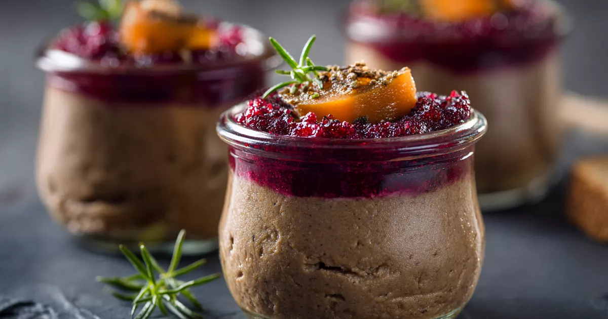 Готовый паштет перекладывают в контейнеры, накрывают, чтобы не темнел, и охлаждают в холодильнике. Паштет с конфитюром удивляет сочетанием сладости и солёности, идеально подходя для любителей необычных вкусов.