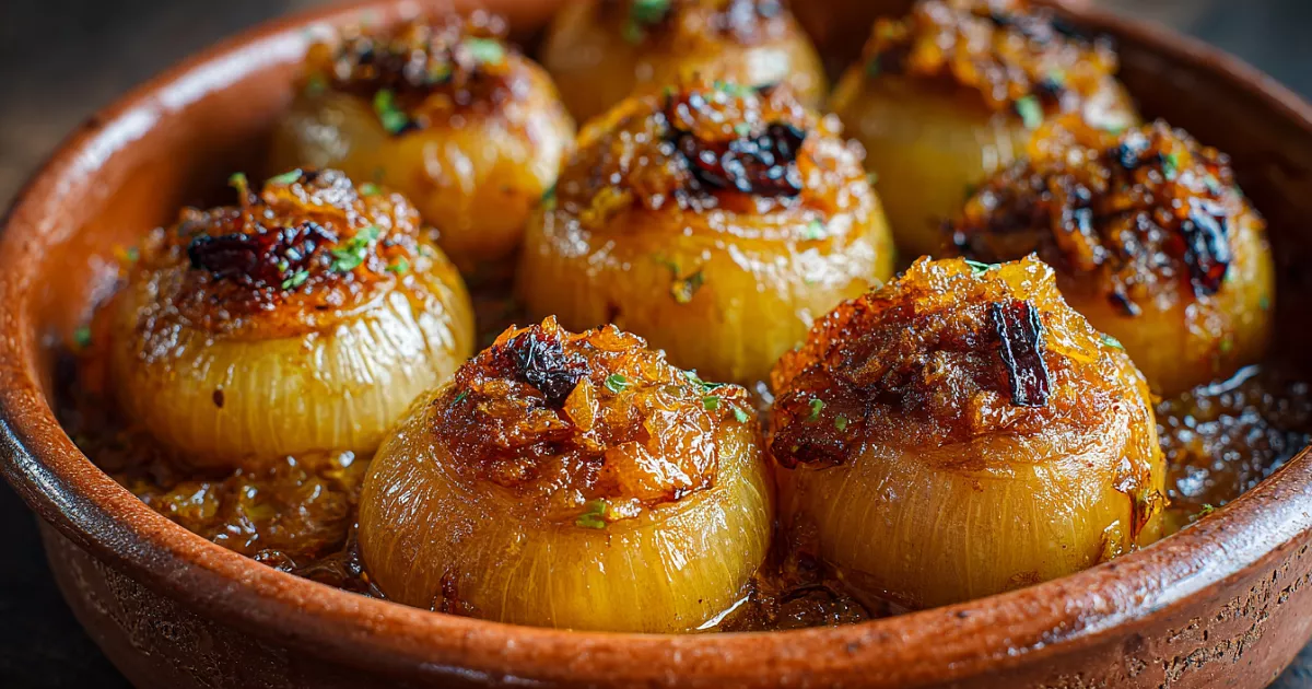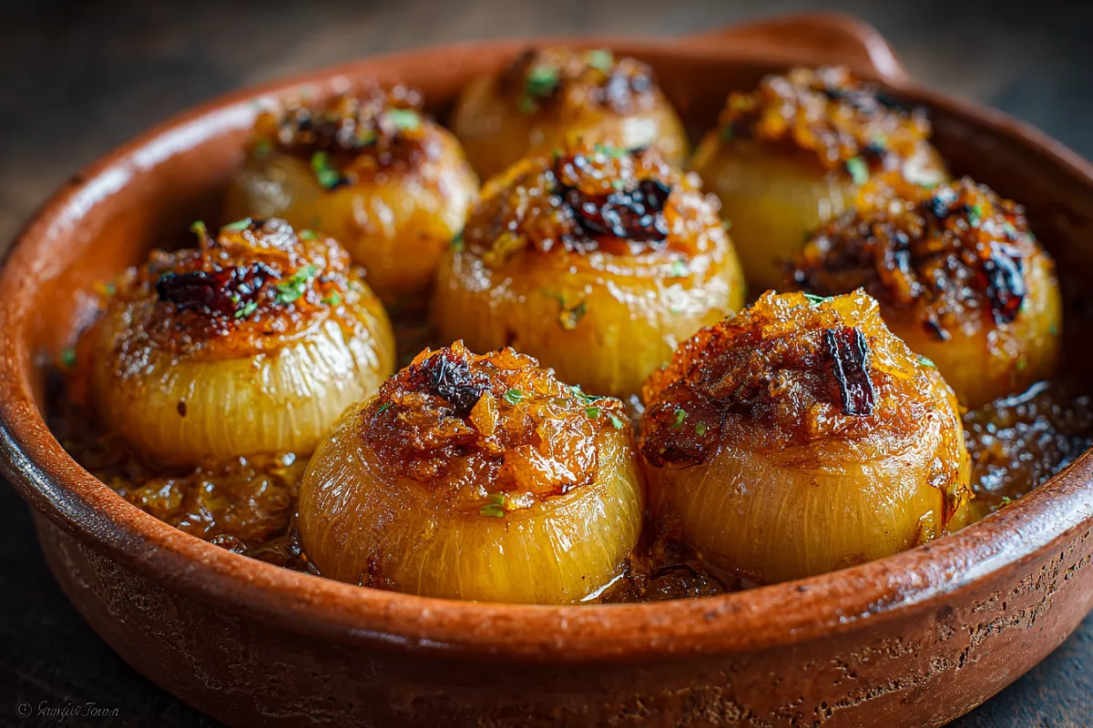 Рецепт старинного еврейского блюда с фаршированным луком и кисло-сладким соусом.