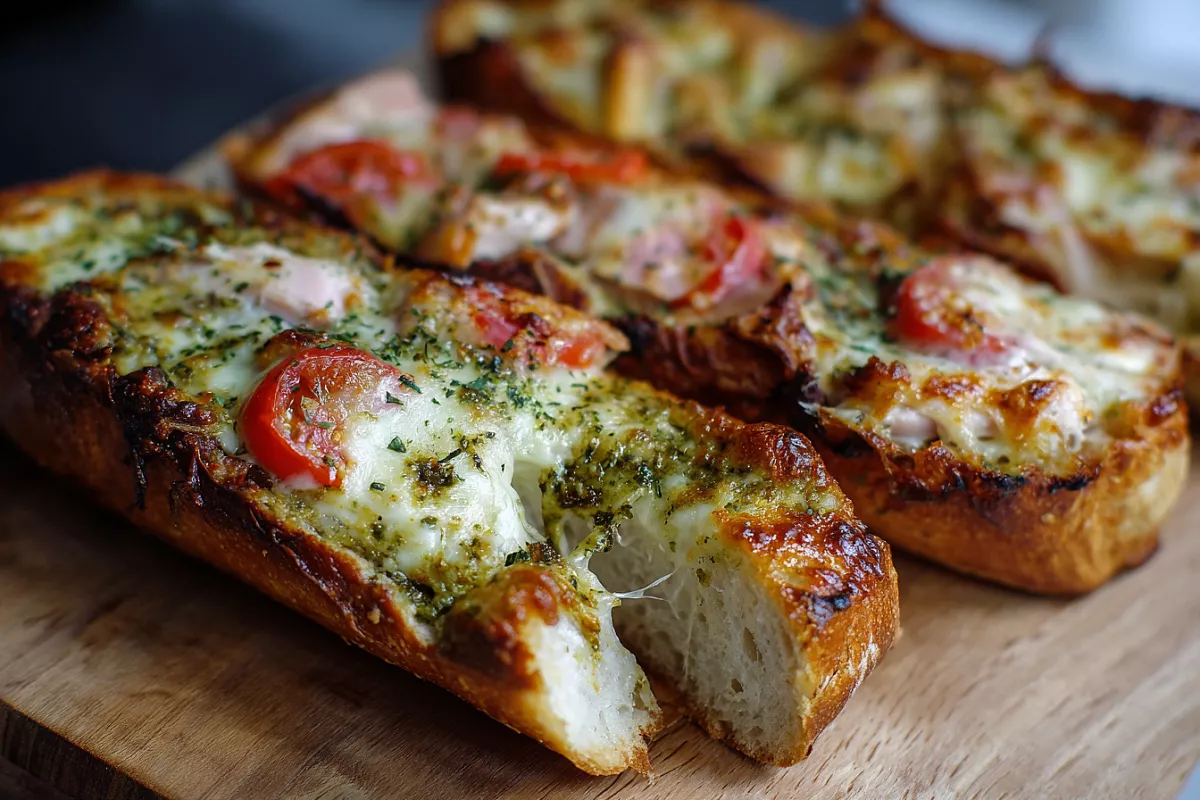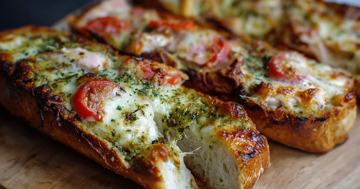 Такой рецепт не требует долгой подготовки: несколько минут на соус, немного нарезки и всего 7 минут в духовке. Получается сытное блюдо, которое понравится и детям, и взрослым. Хрустящий багет, соус песто, расплавленный сыр и свежие помидоры — классика, которая всегда работает.