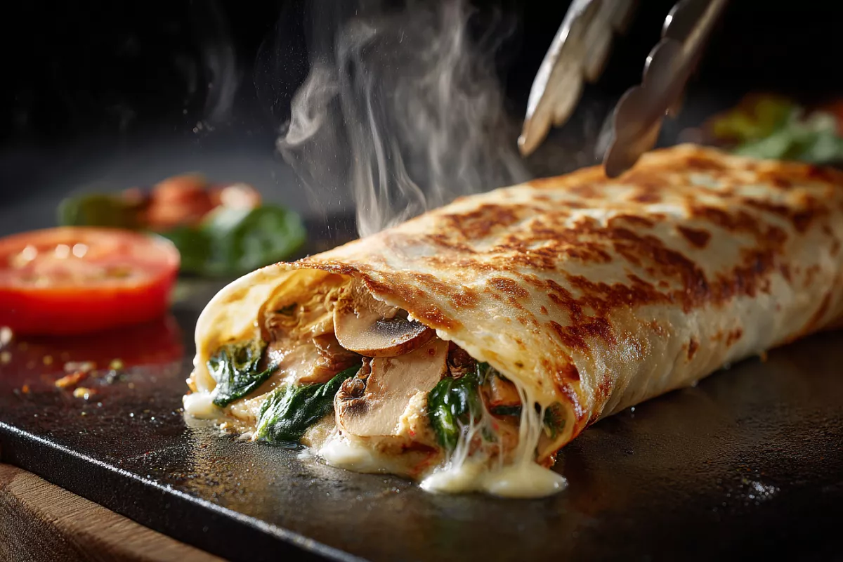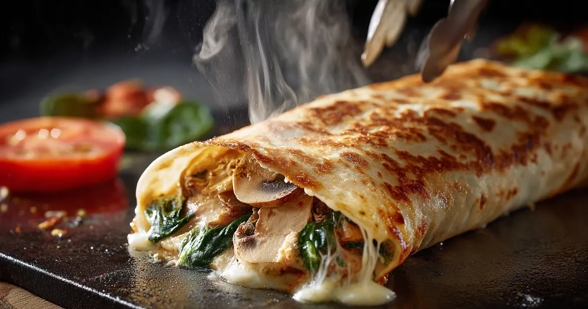 Лаваш, шампиньоны и два сыра — быстрый тёплый ролл с хрустящей корочкой и сливочной серединой для завтрака за считанные минуты