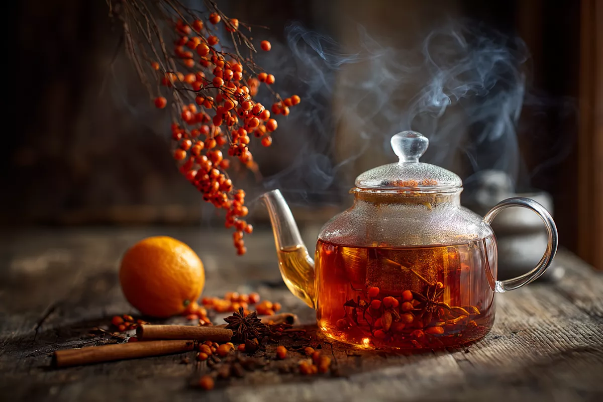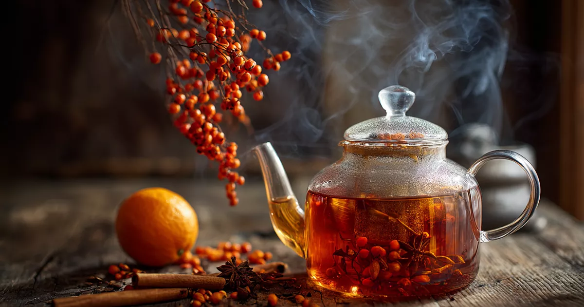 Пряный облепиховый чай за минуты: чистая цедра, целые ягоды после морозилки и мёд, который не теряет вкус.