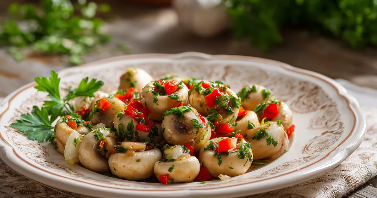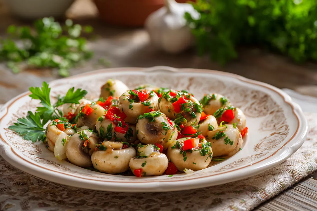 Ферментированные шампиньоны получаются с лёгкой кислинкой, ароматом хрена и специй. Вкус — ближе к маринованным грибам, но без уксуса, поэтому продукт полезнее. Отлично сочетаются с луком и чесноком, могут подаваться как закуска или использоваться в салатах.