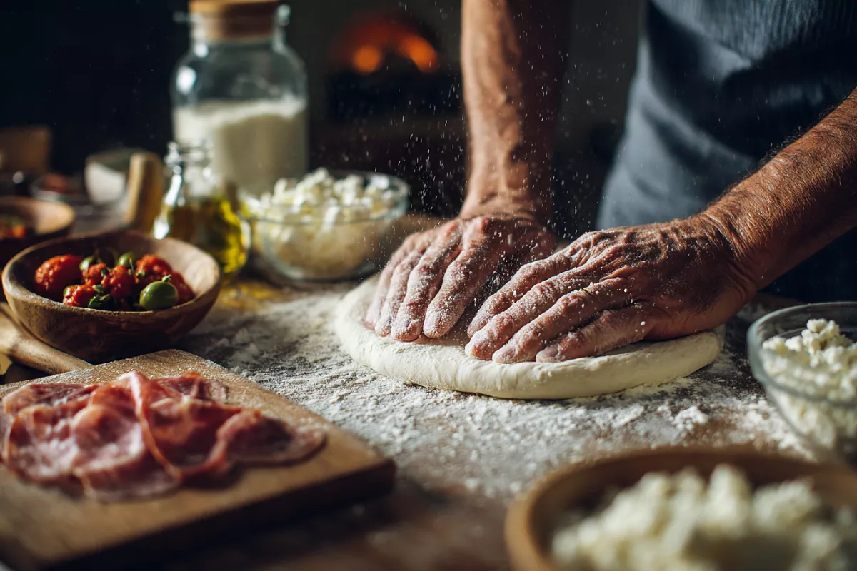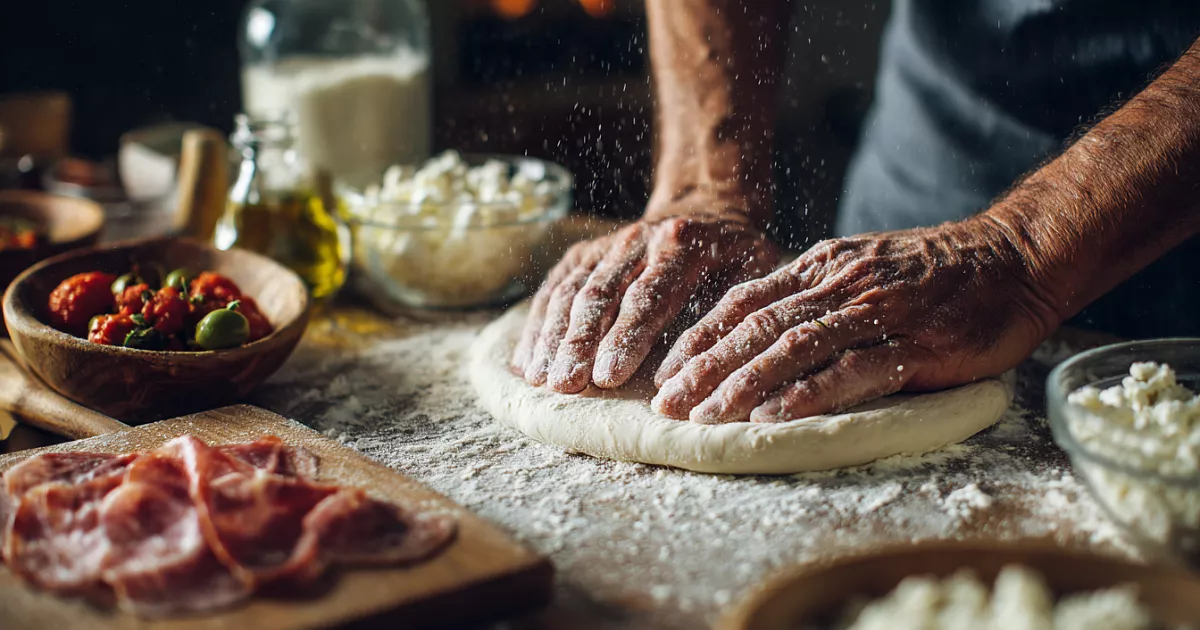 Разделив тесто пополам, его посыпают мукой и раскатывают скалкой или растягивают руками для аутентичности. Мастера часто делают иначе, предпочитая ручной метод, чтобы сохранить воздушность, — это неочевидный ход, экономящий время на уборку после скалки. На основу наносят любой томатный соус, посыпают луком по вкусу, добавляют нарезанные помидоры, маслины, моцареллу и кусочки мяса или колбасы.