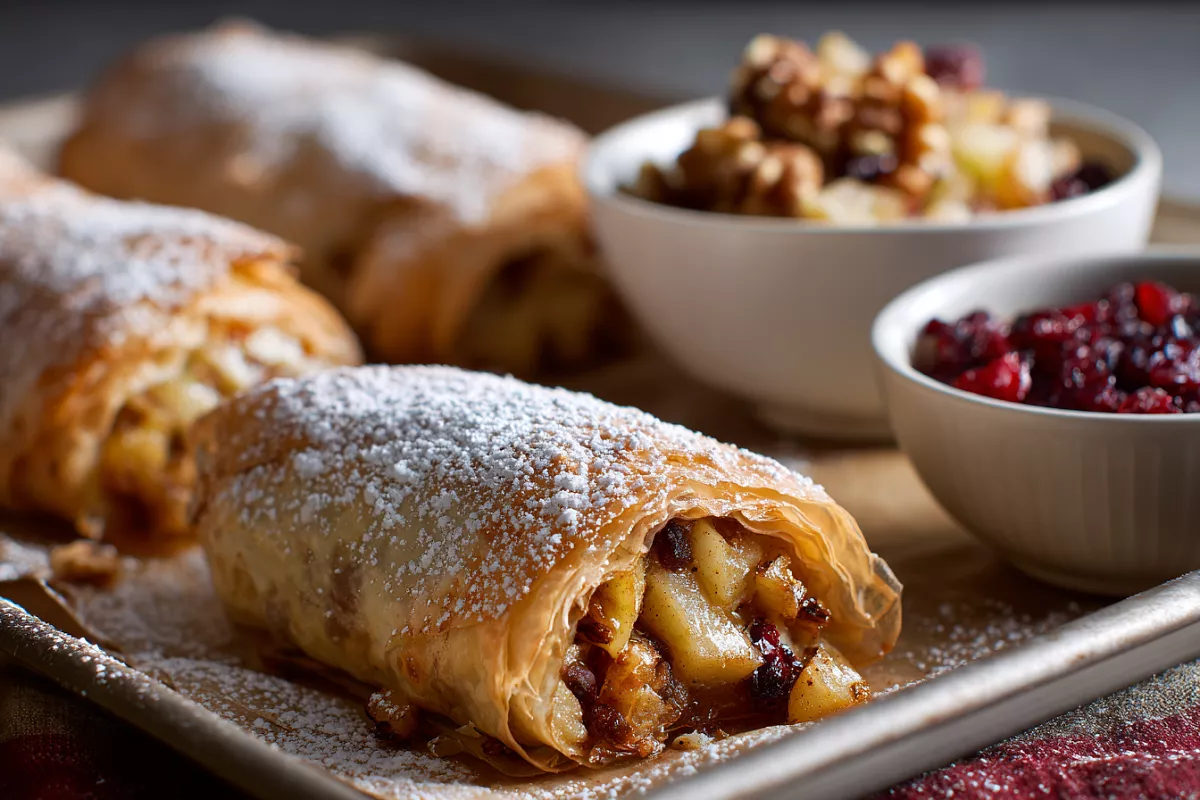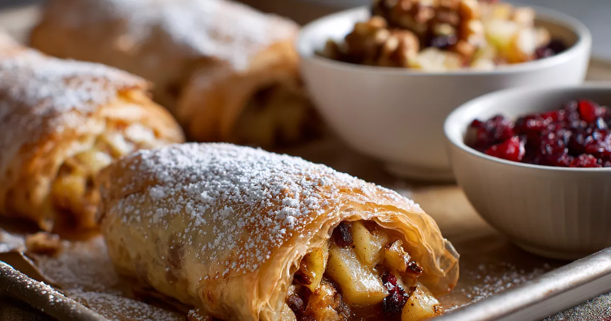 Яблочный штрудель — классика австрийской кухни, где сочетание хрустящего теста и ароматной начинки создаёт уютный вкус. Предварительное тушение яблок с корицей и ягодами делает начинку сочной, но без лишней влаги. Этот рецепт прост в приготовлении и подходит для домашних посиделок.
