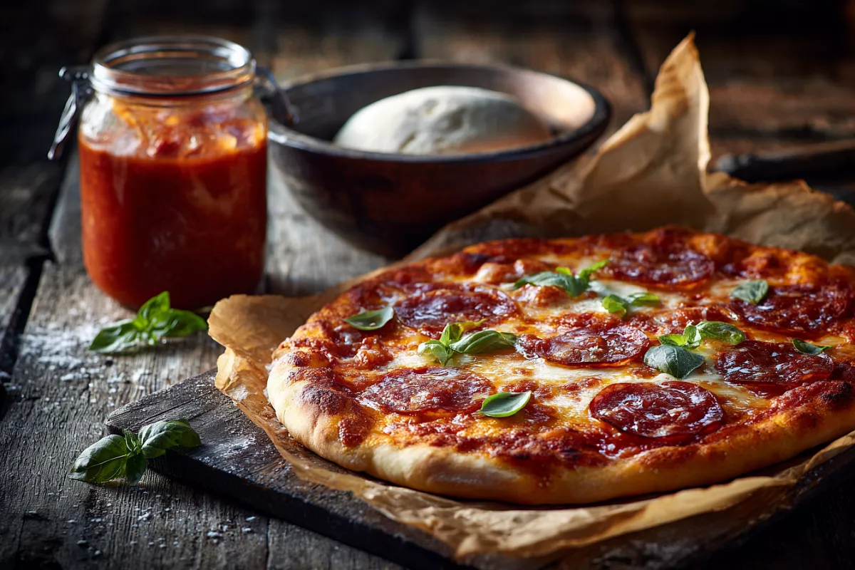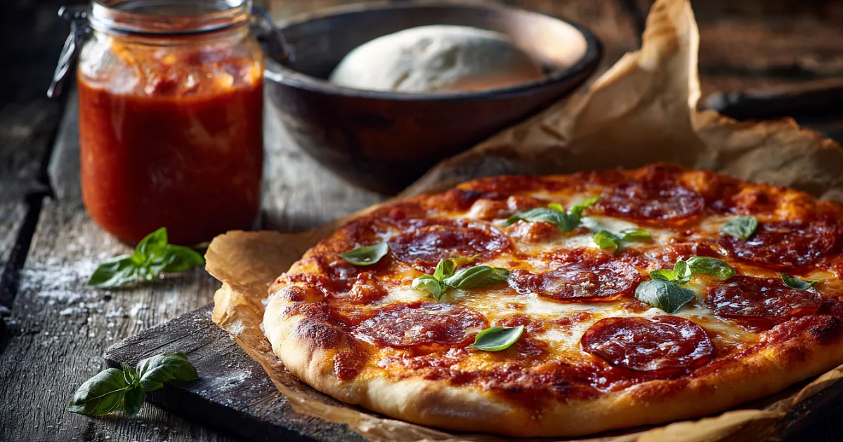 Этот рецепт идеален для тех, кто хочет пиццу без долгого ожидания. Тесто на быстрой закваске с добавлением яблочного уксуса получается лёгким и хрустящим, а домашний томатный соус добавляет свежести. Универсальность начинки позволяет использовать любые ингредиенты из холодильника.
