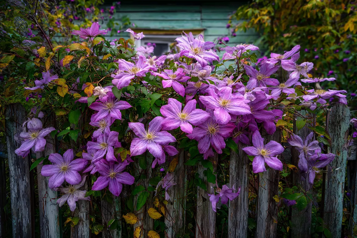 Уход за клематисами прост: весной и до цветения они требуют активных подкормок, во время цветения достаточно полива, а после цветения снова нужны фосфор и калий. Эти шаги позволяют наслаждаться пышным цветением каждый год.