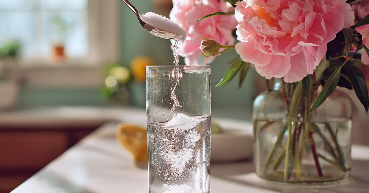Подготовьте стебли. Срежьте низ под углом 45° острыми ножницами — так площадь всасывания воды больше. Удалите листья на участке, который будет в воде. Листья в воде быстро гниют и портят раствор. В вазу пока не ставьте. К капле средства для посуды добавьте столовую ложку сахара и размешайте до полного растворения. Мыло сдерживает рост бактерий и убирает запах, сахар даёт цветам энергию и помогает дольше держать.