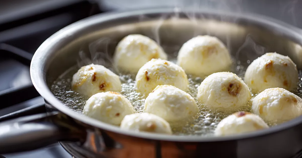 Тесто готовится необычно. Для него нужен один яичный белок и ещё одно целое яйцо. Добавляют щепотку соли. Затем формируют небольшие шарики из начинки, обваливают их в муке — это первый слой. После этого каждый шарик окунают в яйцо, снова обваливают в муке — это второй и третий слой. Так создаётся тонкая оболочка, которая заменяет привычное тесто для вареников.
