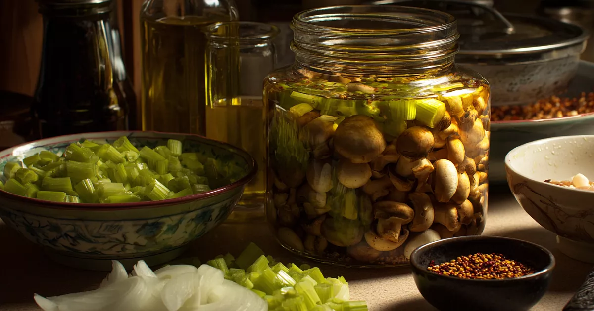 Эти маринованные грибы — настоящая находка для любителей сельдерея и острых закусок. Простота приготовления и насыщенный вкус делают их идеальными для застолья или как дополнение к напиткам. Сельдерей придаёт уникальную ароматную ноту, а специи усиливают пикантность.