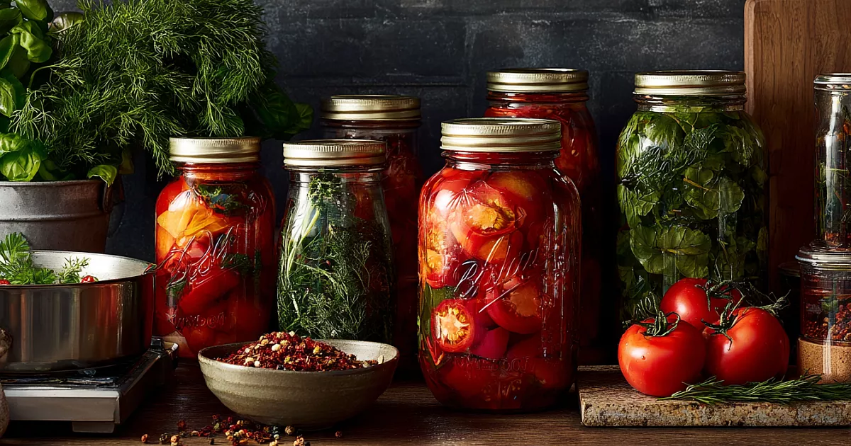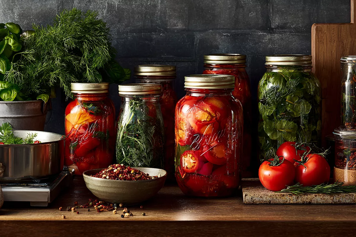 Этот рецепт консервированных помидоров с зеленью и специями — классика домашней кухни. Лимонная кислота придаёт маринаду лёгкую кислинку, а душистый перец и зелень — яркий аромат. Подходит для длительного хранения и станет отличным дополнением к зимнему столу.