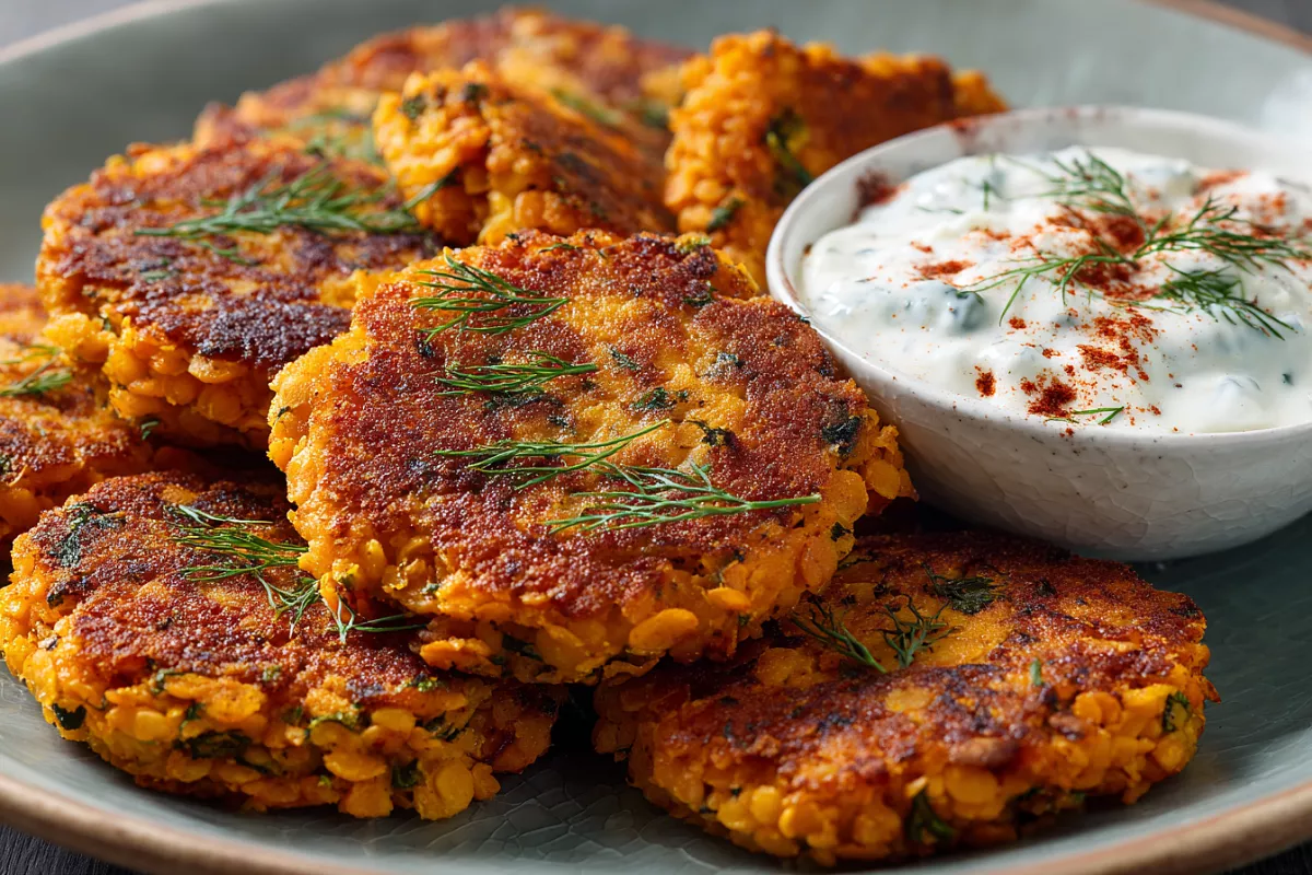 Быстрые постные котлеты из красной чечевицы: сочные внутри, румяные снаружи, плюс простой соус на растительном йогурте.