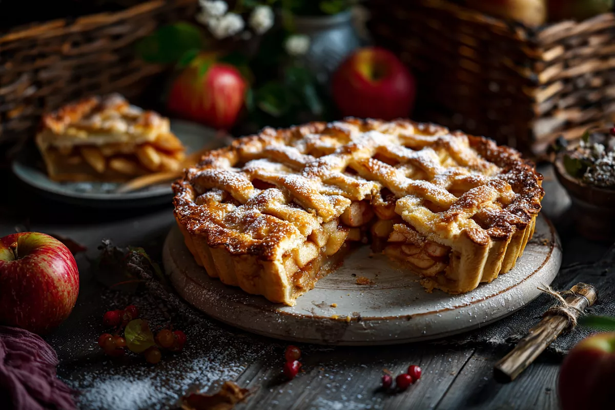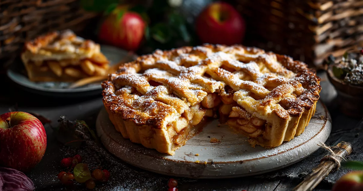 Выпекается пирог тем же способом, но вкус получается заметно насыщеннее: яблоки дают сочность и естественную сладость, творог делает текстуру мягкой, а корочка остаётся румяной и аппетитной.