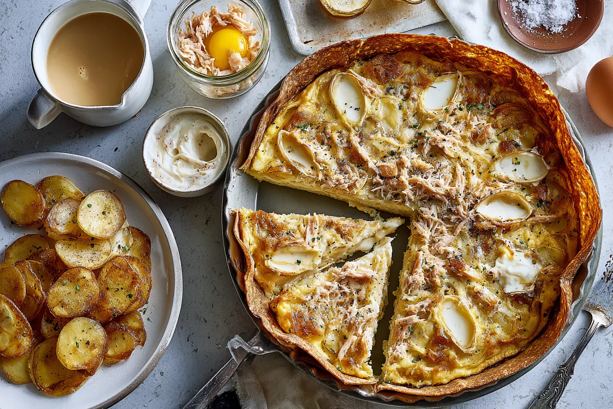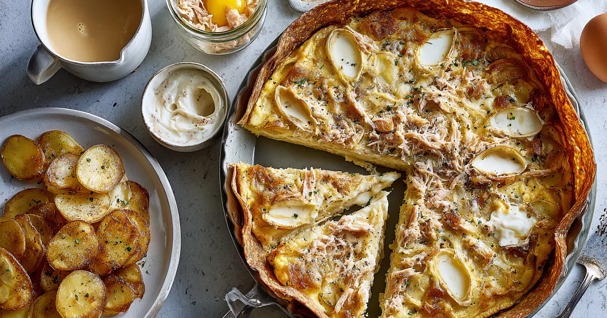Хрустящий картофель, тунец и двойной сыр на основе из тортильи под яично-молочной заливкой: всего 15 минут при 180 градусов — быстрый ужин для всей семьи.