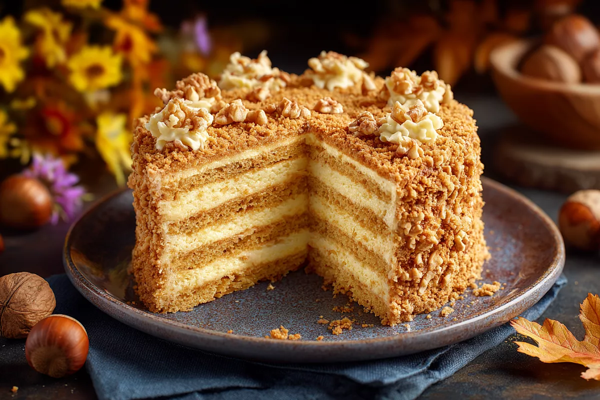 Наталья представляет нежный медовик с пышным бисквитом и сметанным кремом. «Это настоящая магия для тех, кто любит вкусно, но не хочет часами стоять у плиты», — уверяет она, подчеркивая, что торт готовится за час и не требует раскатки коржей, а вкус восхищает.