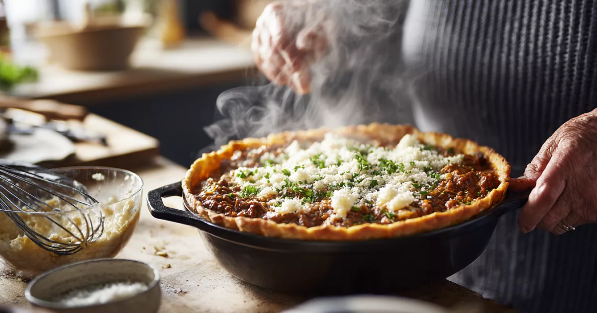 Иногда хочется простого домашнего пирога без длинных ожиданий у духовки. Здесь всё складывается быстро и понятно. Сначала делаем сочную мясную начинку, параллельно взбиваем жидкое тесто на кефире, затем доводим до готовности под крышкой. Получается тот самый заливной пирог, который хорошо держит форму, но остаётся нежным внутри. И да, «пирог очень красивый и аппетитный» — согласен каждой вилкой.
