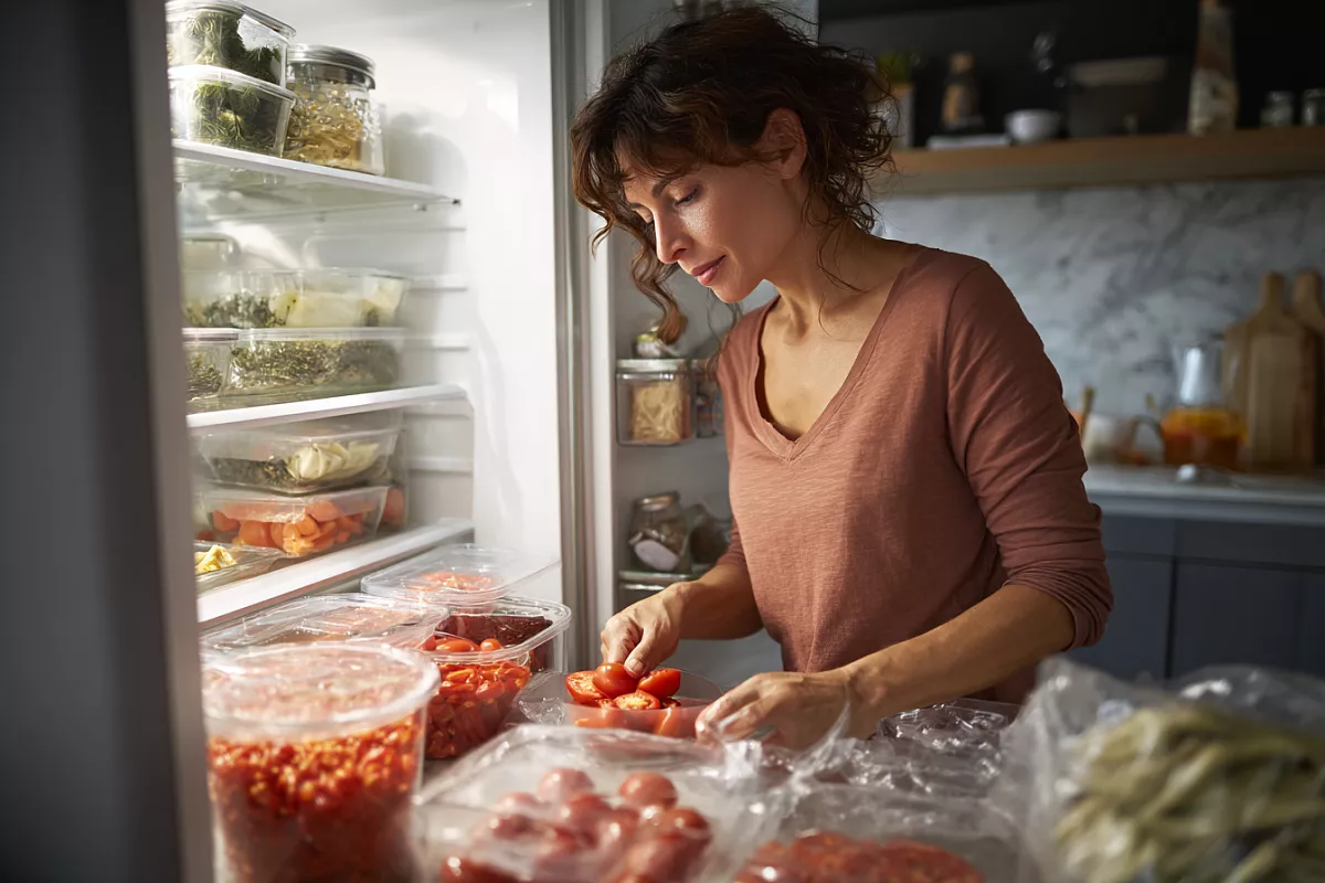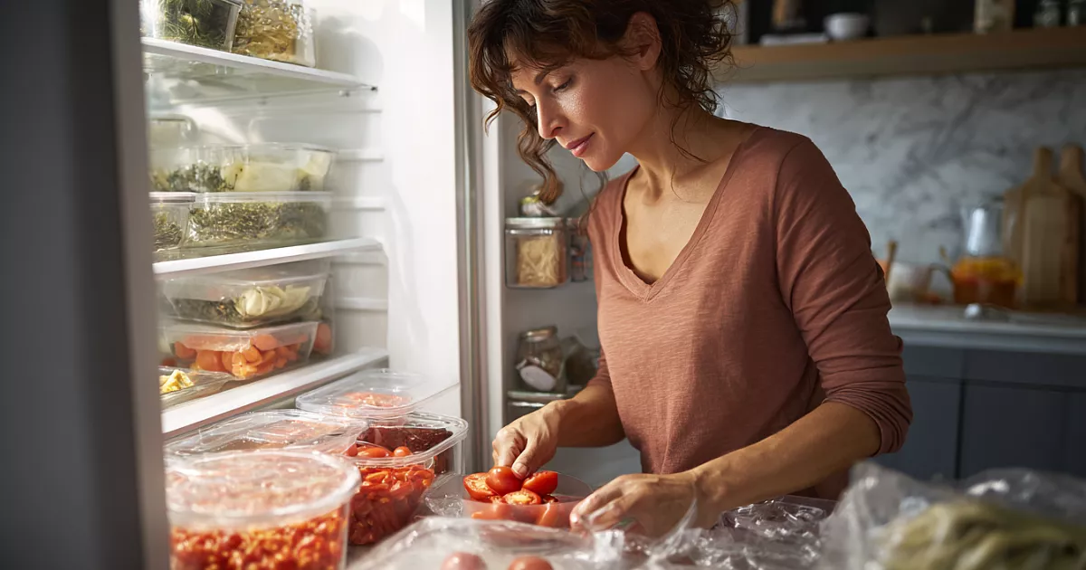 Первый приём — целые плоды. Чистые и сухие помидоры укладывают в пакет, выпускают воздух, плотно закручивают и отправляют в морозильную камеру. Зимой их легко опустить в кипяток, снять кожицу и добавить в поджарку, борщ или рагу. Приятный бонус — плоды в пакете не слипаются и сохраняют форму.
