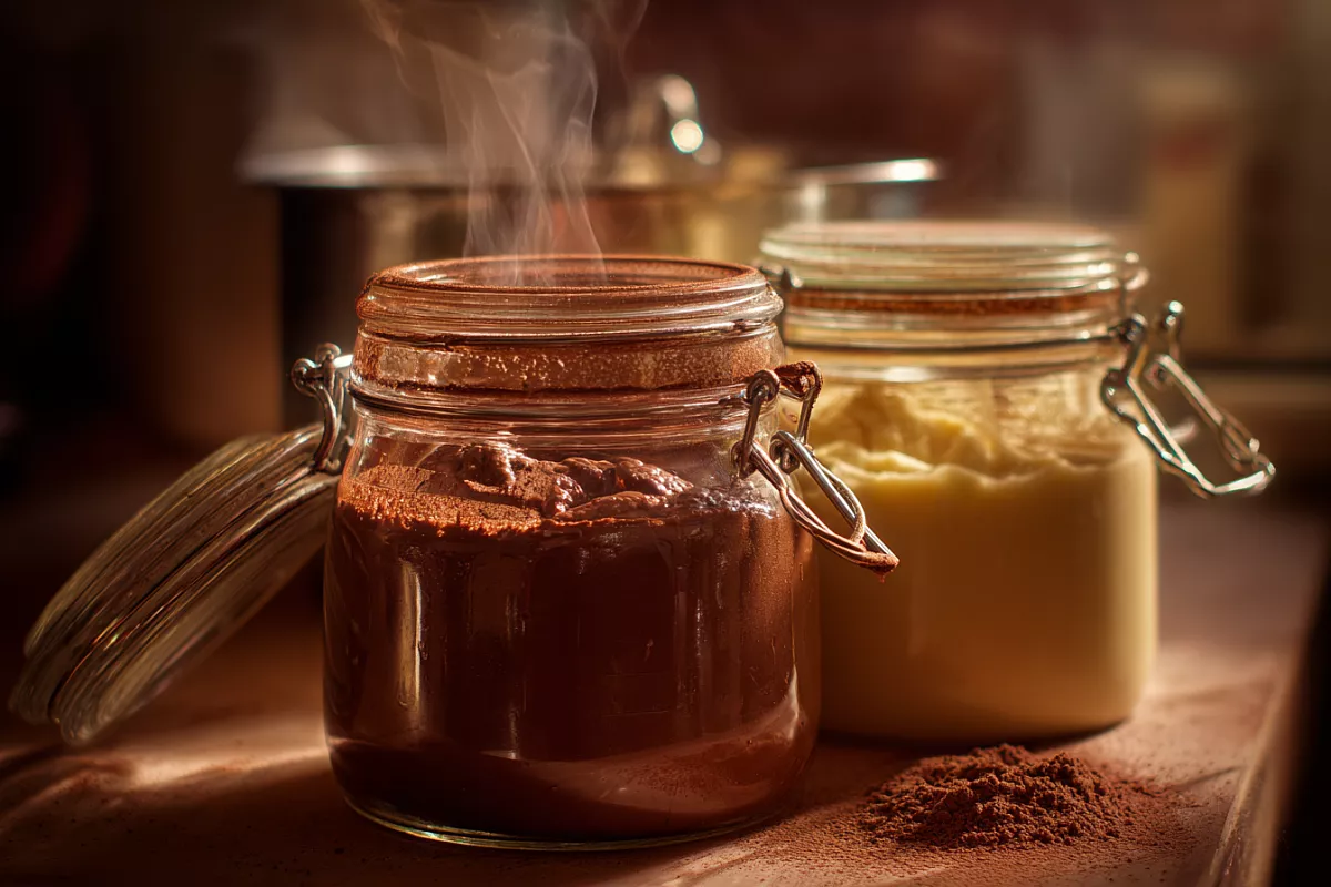Ведущая канала «Ух ты, кухня» делится рецептом быстрых десертов в банках — влажных пирожных с шоколадом и ванилью, без духовки.