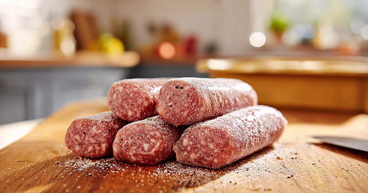 Возьмите 400 граммов свежего колбасного фарша — лучше у проверенного мясника. Посолите 12 граммами соли, добавьте чёрный перец по вкусу. Влейте 25 мл коньяка: он работает и на вкус, и как естественный консервант вместе с солью.