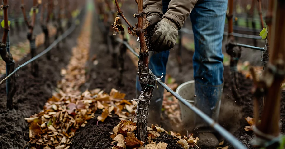 Осенняя обрезка и укрытие. Обрезку делают осенью, затем все лозы укладывают в траншеи и присыпают землёй (чернозём). Так защищают посадки до весны. Большая часть лозы идёт на размножение — на черенки и саженцы.