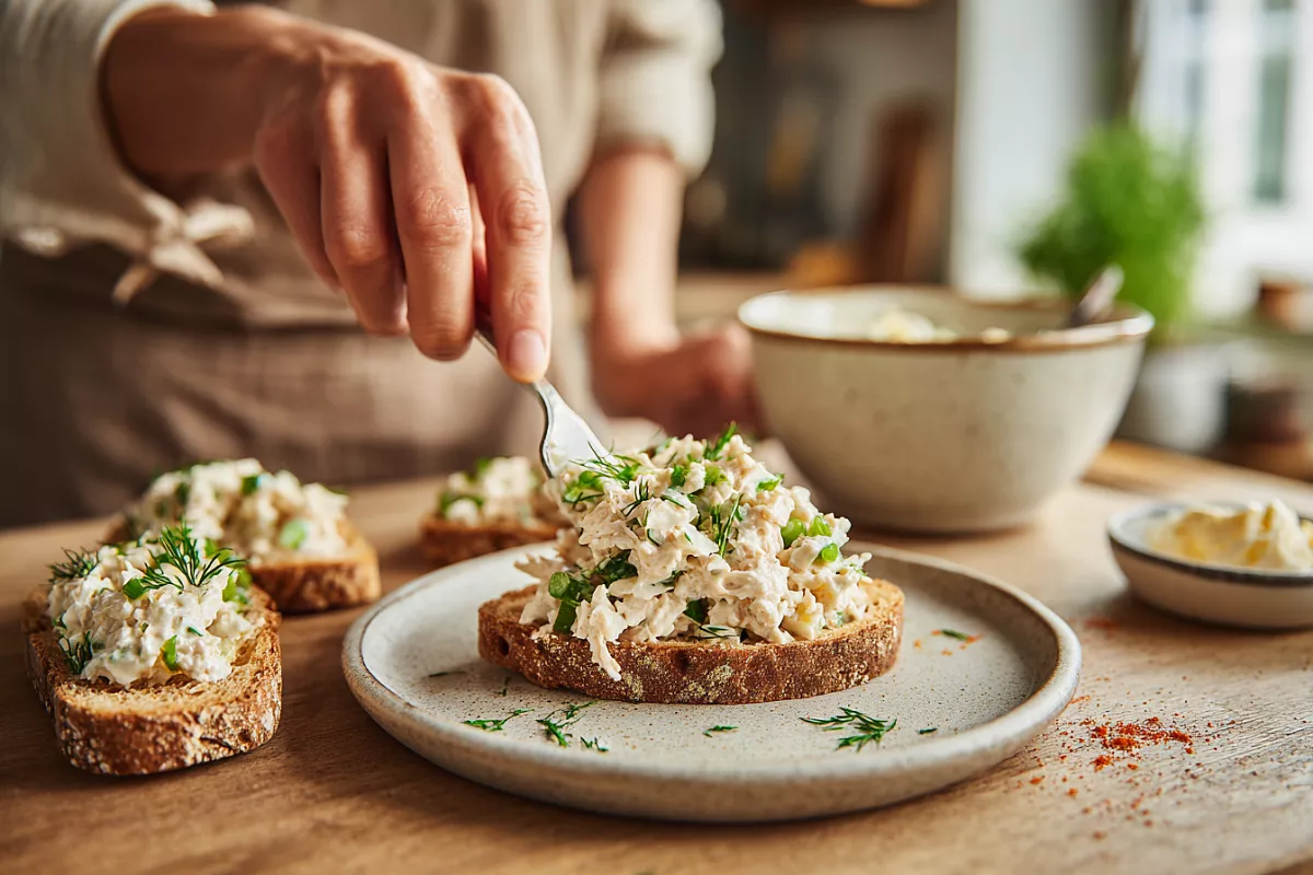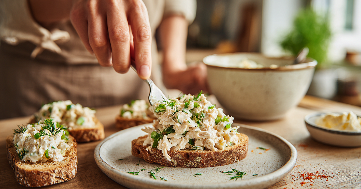 Не дробите тунец в кашу — оставьте небольшие волокна. Если используете масло вместо майонеза, добавьте щепотку лимонной цедры для свежести. Намазывая на хлеб, слегка подсушите тосты, чтобы не размякали.