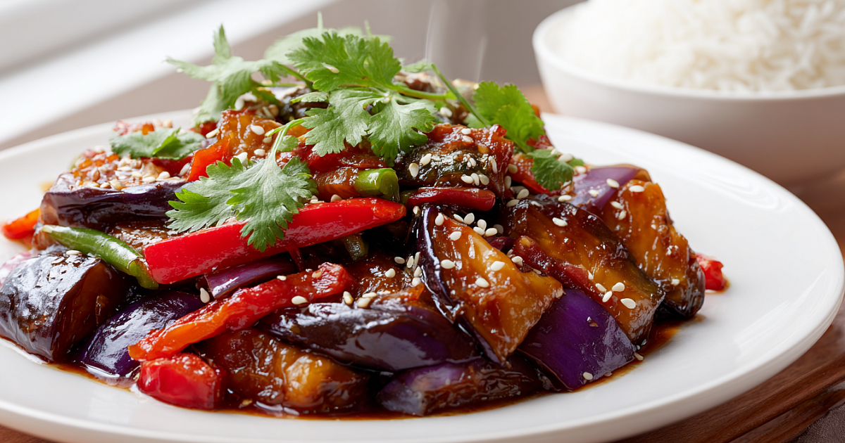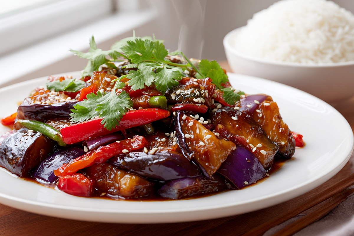 Подаём горячим с рисом или как закуску. Баклажаны получаются сочными, с кисло-сладким вкусом и чесночным ароматом. Для остроты добавьте имбирь или халапеньо.