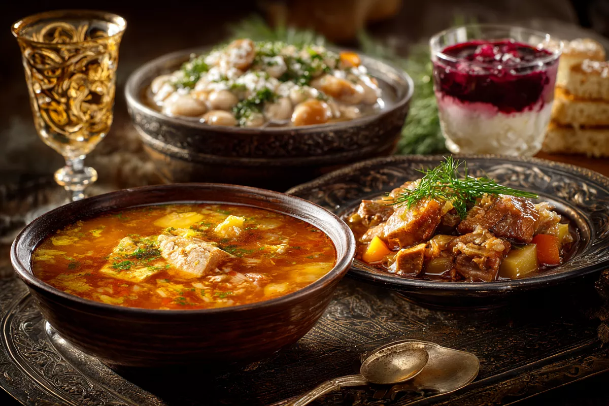 Все блюда лёгкие, подходят для диеты. Подавайте суп горячим, мясо — с рисом, булгуром или макаронами, грибы — как закуску, салат — как гарнир к мясу или рыбе, десерт — как сладкое завершение.